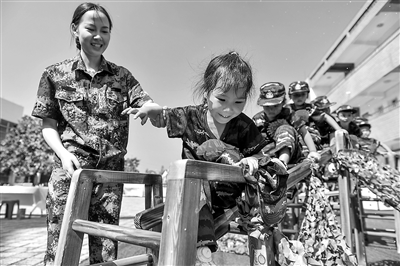 近日,在浙江省湖州市長興縣小浦鎮(zhèn)中心幼兒園,駐地部隊官兵與孩子們一起,開展“勇奪瀘定橋”“穿越封鎖線”等“重走長征路”系列趣味拓展活動,并聆聽革命故事和英雄故事,弘揚愛國主義精神,傳承紅色基因。譚云俸 攝