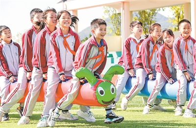 10月10日,浙江省湖州市德清縣舞陽(yáng)街道上柏小學(xué)學(xué)生在做趣味游戲。當(dāng)日,該校開(kāi)展“營(yíng)造良好環(huán)境,共助心理健康”主題教育,通過(guò)心理沙盤(pán)、音樂(lè)放松等方式,引領(lǐng)學(xué)生了解心理健康知識(shí),培養(yǎng)學(xué)生積極向上的心態(tài)。王樹(shù)成 攝