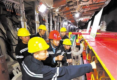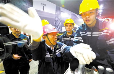 在學(xué)校與華陽(yáng)新材料科技集團(tuán)有限公司共建的煤礦實(shí)景教學(xué)培訓(xùn)基地,掘進(jìn)機(jī)前,從事煤礦一線生產(chǎn)與管理工作30年的工程師李潤(rùn)祥憑借豐富的實(shí)踐經(jīng)驗(yàn),耐心為學(xué)生講解掘進(jìn)機(jī)的構(gòu)成原理及各部件的功能,指導(dǎo)學(xué)生學(xué)習(xí)掘進(jìn)機(jī)的操作規(guī)范和流程;在綜采工作面實(shí)訓(xùn)區(qū)域,曾任某大型煤礦機(jī)電礦長(zhǎng)的高級(jí)工程師彭紅星指導(dǎo)學(xué)生學(xué)習(xí)檢修采煤機(jī)的電控系統(tǒng),包括故障診斷、定位與排除;在機(jī)電硐室實(shí)訓(xùn)區(qū)域,學(xué)生們?cè)诠こ處熂綐淞趾蛷埼墨I(xiàn)的指導(dǎo)下,直觀地了解電纜連接中“雞爪子”“羊尾巴”等錯(cuò)誤接線方式。