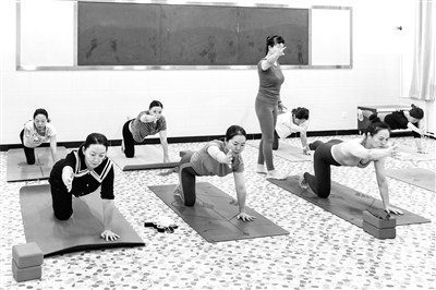 教師長期伏案、久站久坐,容易給身體帶來隱患。對此,金昌市第三中學(xué)開辦了女教師瑜伽班,讓她們放松僵直的身體,豐富業(yè)余生活。“感覺幸福滿滿!瑜伽讓我感到非常放松,練完之后心情也好了,干工作更有勁了?!痹撔UZ文教師顧麗平說。