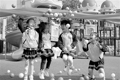 日前,在山東省青島市李滄區(qū)青峰路幼兒園,小朋友們進行蹦蹦跳跳海洋球游戲。連日來,該幼兒園利用大課間開展了形式多樣的趣味運動,結(jié)合幼兒年齡特點,設(shè)置了蹦蹦跳跳海洋球、打地鼠、滾輪胎、老鷹抓小雞等趣味運動項目,讓幼兒在游戲情景中感受與同伴運動的樂趣,同時孩子們在科學(xué)的運動中獲得健康。