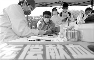 11月17日是“國(guó)際大學(xué)生節(jié)”,南華大學(xué)衡陽(yáng)醫(yī)學(xué)院在2022級(jí)大學(xué)新生中開展“獻(xiàn)第一次血、過第一個(gè)大學(xué)生節(jié)、履第一次救死扶傷責(zé)任”志愿無償獻(xiàn)血活動(dòng)。該學(xué)院的大學(xué)新生們通過參與第一次志愿無償獻(xiàn)血,首次履行了救死扶傷的責(zé)任,度過了人生中第一個(gè)大學(xué)生節(jié)。曹正平 攝