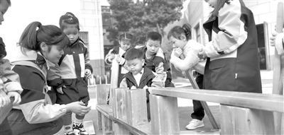 近日,安徽省肥東縣店埠學(xué)區(qū)幼教集團(tuán)城南新村幼兒園在公園開展戶外課程。近年來,肥東縣教育主管部門大力倡導(dǎo)特色辦園,推動園本課程建設(shè),讓“生活、自然、互長”理念融入到實際教學(xué)中。