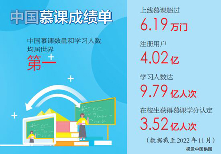 一組數(shù)字見證著中國慕課的蝶變:截至2022年11月,上線慕課超過6.19萬門,注冊用戶4.02億,學(xué)習(xí)人數(shù)達(dá)9.79億人次,在校生獲得慕課學(xué)分認(rèn)定3.52億人次,中國慕課數(shù)量和學(xué)習(xí)人數(shù)均居世界第一,并保持快速增長的態(tài)勢。