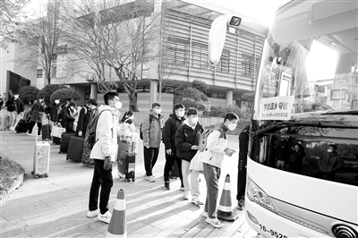 12月15日,浙江農(nóng)林大學(xué)提前返鄉(xiāng)的學(xué)生坐上了學(xué)校定制的專線班車,學(xué)生們可以通過班車直接抵達(dá)機(jī)場(chǎng)、火車站等,讓大家的回家之路更加安全、便捷。 陳勝偉 攝