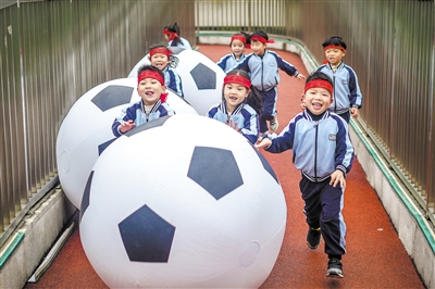 日前,浙江省湖州市長興縣龍山街道中心幼兒園開展了足球嘉年華活動,孩子們通過“帶球越障”“足球大戰(zhàn)”“定點射門”等足球趣味游戲,增強了對足球運動的興趣,磨煉了意志,收獲了成長。 通訊員 吳拯 攝