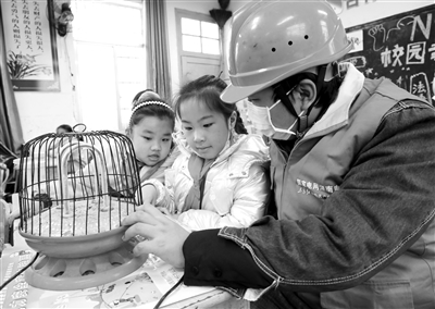 12月16日,湖南省湘西土家族苗族自治州保靖縣供電公司的黨員服務(wù)隊員在毛溝小學給學生講解冬季取暖安全用電知識。連日來,該供電公司針對冬季取暖用電高峰到來,組織黨員服務(wù)隊深入中小學校,發(fā)放用電安全宣傳資料,講解安全用電常識和節(jié)約用電知識,演示正確使用取暖設(shè)施等,提高學生的冬季安全用電意識和自我防護能力。俞采華 攝
