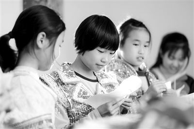 圖為貴州省黔西市中坪鎮(zhèn)中坪小學的學生在練習刺繡。近年來,中坪小學積極推動優(yōu)秀“非遺”文化進課堂,安排精通刺繡、蠟畫、蠟染、剪紙的教師指導學生學習,讓山村小學的孩子們“零距離”接觸“非遺”技藝,弘揚和傳承民族優(yōu)秀傳統(tǒng)文化。周訓超 攝