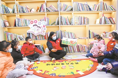 12月18日,在江蘇省如皋市長(zhǎng)江鎮(zhèn)海壩社區(qū)繪本館內(nèi),小朋友聆聽(tīng)有趣的繪本故事。該社區(qū)攜手轄區(qū)內(nèi)蘇夕繪本館開(kāi)展“走進(jìn)繪本 快樂(lè)成長(zhǎng)”公益閱讀活動(dòng)?;顒?dòng)內(nèi)容包括講繪本、讀繪本、演繪本等,幫助孩子們更好地去欣賞繪本,體驗(yàn)繪本的內(nèi)涵與快樂(lè),激發(fā)孩子閱讀興趣。