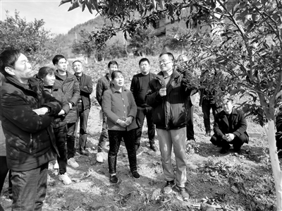 轉(zhuǎn)折發(fā)生在2016年。一場五十年不遇的極端低溫天氣,氣溫降到了零下12攝氏度,果樹受到不同程度的凍害。當時坐果較早、個體較大的枇杷幼果全部受凍,但由于其生長特性,短時間內(nèi)受凍幼果不會表現(xiàn)出癥狀。為了防止群眾的“經(jīng)驗主義”——疏果操作中疏除未受凍的個體小的幼果而保留已經(jīng)受凍但未顯現(xiàn)癥狀的大果,魯周民在大年初八就趕到村里,向村干部和組長說明情況,并要求必須馬上通知到每一個枇杷種植戶,停止疏果操作管理。聽完魯周民的指導(dǎo),村民們半信半疑地停止了疏果操作。而當天氣回暖,受凍大果紛紛掉落時,村民們徹底信服了魯周民。當年枇杷收入近100萬元,沒有出現(xiàn)嚴重的經(jīng)濟損失。從此,果樹種植戶們年年盼著魯教授到自家果園示范果樹種植管護技術(shù)。