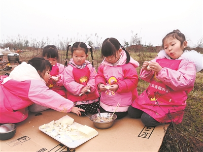 日前,重慶市大足區(qū)海棠幼兒園的孩子們在戶外野炊。為鼓勵孩子們勇于探索,從大自然中學習知識,教師帶領他們就地尋來石頭、木塊等材料搭建野外灶,孩子們洗鍋、備菜、生火,忙得不亦樂乎。