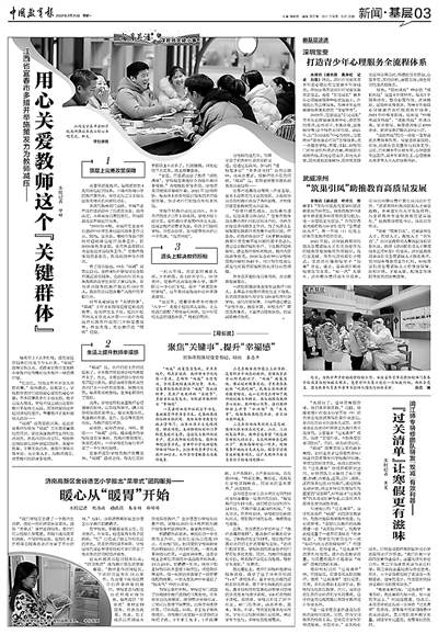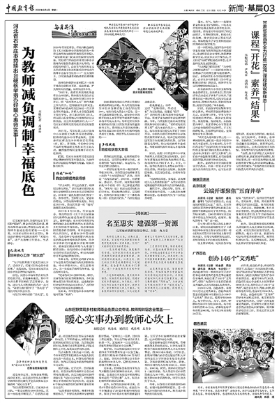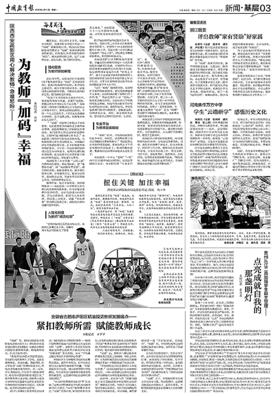 我們將更多圍繞“通訊員”核心群體,強化與讀者的溝通互動,重點推出:聚焦特點鮮明的普通老師“我身邊的好老師”,刊發(fā)基層通訊員、讀者讀報用報的“尋找最美讀者”,基層短平快的鮮活評論欄目“基層有話”……