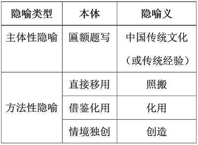 面對(duì)問題,我們首先要進(jìn)行事實(shí)性追問,“是真的嗎?”就題目而言,首先就是要弄清楚情境所給的“給匾額題名”這個(gè)隱喻主體究竟指什么,“直接移用”“借鑒化用”“情境獨(dú)創(chuàng)”這三種方法性隱喻又分別指什么。我們用一個(gè)簡(jiǎn)單的圖示來(lái)說(shuō)明: