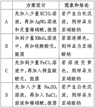 亞硝酸鈉俗稱(chēng)“工業(yè)鹽”,其外觀、口感與食鹽相似,人若誤服會(huì)中毒?,F(xiàn)將適量某樣品(成分為亞硝酸鈉或氯化鈉)溶于水配成溶液,分別取少量該溶液于試管中進(jìn)行實(shí)驗(yàn)。下列方案設(shè)計(jì)、現(xiàn)象和結(jié)論都正確的是( )