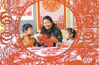 圖①2022年12月30日,山東高密非遺傳承人田桂芹帶領(lǐng)孩子們進(jìn)行迎新年剪紙創(chuàng)作。通訊員 李海濤 攝