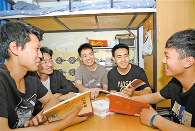 北京交通大學(xué)計(jì)算機(jī)學(xué)院學(xué)生結(jié)合“毛澤東思想和中國特色社會主義理論體系概論”課程內(nèi)容,在宿舍集體學(xué)習(xí)領(lǐng)會黨的二十大精神。張先睿 攝