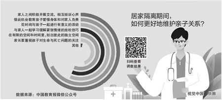 感染病毒康復(fù)后,如何更好地維護(hù)親子關(guān)系?調(diào)查顯示,家長們比較認(rèn)同“家人之間積極開展交流,相互傾訴心聲”“借此機(jī)會(huì)教育孩子愛惜身體并對家人負(fù)責(zé)”“花時(shí)間與孩子一起進(jìn)行有意義的活動(dòng)”“劃出彼此的獨(dú)立空間”等。
