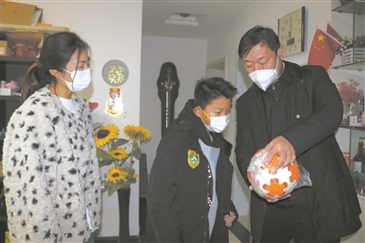 孝感市教育局正在全市開展“萬名黨員教師家校協(xié)同行動”,深入推進黨員教師家訪活動,為每一個孩子點亮微心愿。得知劉錦軒的新年微心愿后,孝感市教育局局長管志剛多方聯(lián)系,請正在武漢從事足球青訓(xùn)工作的足球退役運動員顏博為劉錦軒在足球上簽名。管志剛還帶著這份暖心的禮物,親自送到了劉錦軒家中。