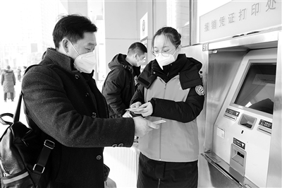 1月7日,在江蘇省鎮(zhèn)江火車站,江蘇大學(xué)志愿者為旅客進(jìn)行取票服務(wù)。當(dāng)日,2023年春運(yùn)開啟,江蘇省鎮(zhèn)江火車站聯(lián)合南京鐵路公安處鎮(zhèn)江站派出所民警和江蘇大學(xué)等地志愿者,開展“春運(yùn)志愿行 溫暖回家路”活動(dòng),為過(guò)往旅客提供搬運(yùn)行李、送春聯(lián)、旅途安全知識(shí)宣講等暖心服務(wù),溫暖旅客回家路。