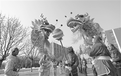 1月7日,山東省臨沂市沂南縣青駝鎮(zhèn)高里中心小學(xué)的孩子們在學(xué)舞龍,在年味里感受傳統(tǒng)文化的魅力。寒假期間,該校開展“傳統(tǒng)文化迎新年”活動,邀請民間藝人教授舞龍、跑旱船等民間藝術(shù),吸引了眾多學(xué)生爭相學(xué)習(xí)。學(xué)生們在濃濃的年味里感受傳統(tǒng)文化的魅力,喜迎新春佳節(jié)。杜昱葆 攝