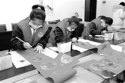1月9日,江蘇省徐州市豐縣東關(guān)小學(xué)組織開展“寒冬家訪 情暖千家”寒假大家訪活動,入戶家訪前書法興趣社團的師生為被訪同學(xué)家庭書寫春聯(lián)、“?!弊帧D為學(xué)生在寫春聯(lián)。