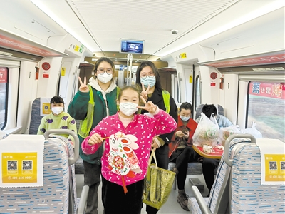 在此次活動中,“小青橙”志愿服務(wù)隊還專門策劃開展了黨的二十大精神微宣講活動,通過一個個知識問答,增加了與乘客們的互動,拉近了彼此的距離。此外,志愿服務(wù)隊還發(fā)揮專業(yè)優(yōu)勢為乘客們提供肩頸按摩、測量血壓等健康服務(wù),并為乘客送上喜慶的兔燈、福字、兔年口罩等小禮品,送上新年祝福,車廂內(nèi)一派其樂融融的景象。