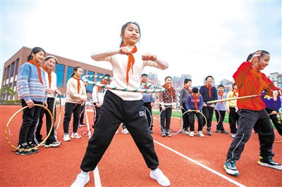 2月7日,江蘇省海安高新區(qū)實驗小學的孩子們課間在做運動。新學期伊始,該校孩子們在老師的組織下開展豐富多彩的體育游戲活動,盡享快樂校園時光。