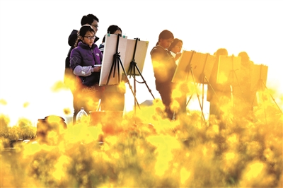 2月21日,一群學(xué)生在江西省樟樹市永泰鎮(zhèn)官湖村油菜花海中寫生。隨著天氣回暖,當(dāng)?shù)赜筒嘶ǜ?jìng)相綻放,吸引了眾多學(xué)生前來觀賞、寫生。 新華社發(fā)(周亮 攝)