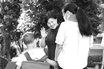 方青赴任金東區(qū)實驗小學后,“校門口的方校長”就成了一道亮麗風景。從家長、學生的神情舉止上,方青會分析其背后的心理軌跡,并給出最恰當?shù)奶幚矸绞?。一名新生從不跟老師打招呼,方青在校門口觀察發(fā)現(xiàn)其父親就是如此習慣,于是方青每天都會笑著對學生說“早上好”。直到第三年的一天早晨,學生開口了:“校長,早上好。”