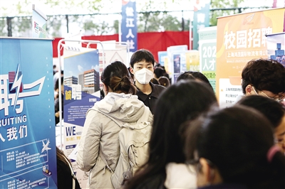 3月17日,求職者在上海第二工業(yè)大學網(wǎng)球館春季招聘會上求職。當日,上海市2023屆高校畢業(yè)生春季招聘會在上海第二工業(yè)大學舉行,現(xiàn)場招聘單位1527家,用人需求3.7萬余個。新華社記者 辛夢晨 攝