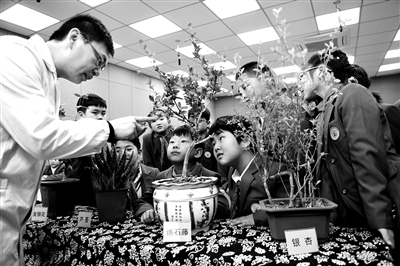 3月16日,第七批全國老中醫(yī)藥專家學(xué)術(shù)經(jīng)驗(yàn)傳承人沈志強(qiáng)帶領(lǐng)學(xué)生認(rèn)識(shí)中草藥。當(dāng)日,安徽省合肥市蚌埠路第二小學(xué)開展“感受中醫(yī)魅力弘揚(yáng)中醫(yī)文化”活動(dòng),迎接3月17日“中國國醫(yī)節(jié)”,邀請(qǐng)沈志強(qiáng)為學(xué)生講解金銀花、石斛、絡(luò)石藤等常見中醫(yī)藥材的功用和療效,帶領(lǐng)學(xué)生認(rèn)識(shí)穴位,感受中醫(yī)藥傳統(tǒng)文化的悠久歷史和博大精深。