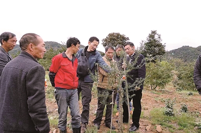 當時間回到2009年,這里還是一片荒山,錦溪村人主要靠種雷筍、花木為生,村黨支部書記金忠芳正為村里的產業(yè)發(fā)展發(fā)愁。而此時,寧波城市職院景觀生態(tài)學院的園藝技術專業(yè)已是浙江省優(yōu)勢專業(yè),在當?shù)赝邢碛休^高知名度?!板\溪村自然環(huán)境適合香榧樹種植生長,香榧干果市場售價高,供不應求?!彪p方結對后,首批科技特派員來到村里,經過科學論證和多方考察,建議村里發(fā)展香榧產業(yè),有望填補當?shù)馗邫n干果生產空白。2010年,錦溪村就在伏虎山上嫁接種植了100多畝香榧樹,次年東擴300畝。