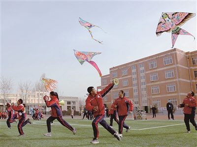 ③3月15日,甘肅省張掖市臨澤縣蓼泉鎮(zhèn)中心小學開展放風箏活動,學生們紛紛在校園操場上放飛自己親手制作的風箏。賈斌 攝