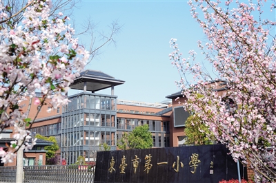 春和景明,艷陽高照,江蘇省東臺市第一小學校園的櫻花、海棠花、紅花檵木花盛開,在藍天的映襯下校園顯得格外美麗,移步換景,令人賞心悅目。