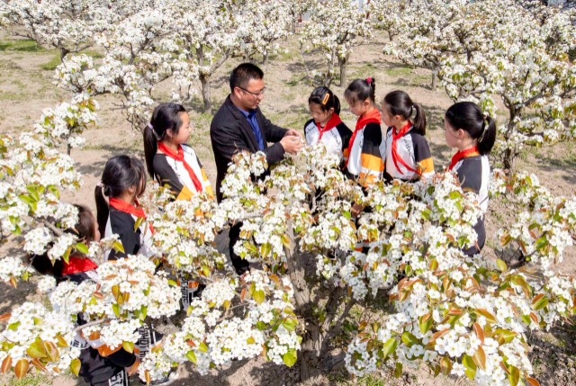 近日,在江蘇省海安市城東鎮(zhèn)延壽小學梨園內,農技人員為學生講解疏花技術。近年來,江蘇省海安市城東鎮(zhèn)延壽小學高度重視勞動教育,通過在教學樓后側栽種梨樹,定期組織學生除草、施肥、剪枝、疏花(果)等勞動實踐活動,讓學生在勞動體驗中學農事、提升勞動素養(yǎng),體驗勞動之美,享受勞動之樂。向中林 攝