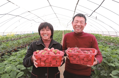 江南四月,草長鶯飛,桃紅柳綠。江蘇省句容市白兔鎮(zhèn)農(nóng)民笪小華、包雅青夫婦提著裝滿草莓的籃子走出大棚,笑意寫在臉上。“由于采用了超高壟栽培新模式,如今不僅可以直起腰桿子采草莓,收入也比過去高多了?!斌涡∪A高興地說。