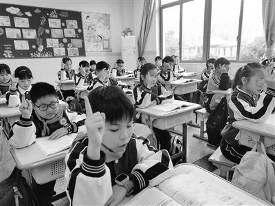 課堂組織如何又好又快?我們學(xué)校推行的家常課改革開發(fā)了課堂管理口令、課堂管理手勢這兩個有效的課堂組織工具。課堂管理口令是有聲管理,如——師說“說看黑板”,生說“就看黑板”;師說“書捧起”,生說“往外斜”;師說“書本合攏”,生說“左上角”……家常課開發(fā)了一至六年級不同年級的不同課堂管理口令。課堂管理手勢是無聲管理,如:自由讀課文3分鐘,學(xué)生讀第一遍伸出一根手指,讀第二遍伸出兩根手指;教師手勢抬高表示音量加大,教師手勢下壓表示音量降低……學(xué)校推行的家常課改革共開發(fā)了20個課堂管理手勢。