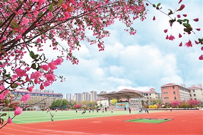 近日,在山東省青島博文小學(xué),春的氣息悄然灑滿校園的每個(gè)角落,孩子們?cè)诓賵?chǎng)的春色中奔跑、歡笑、成長(zhǎng)。 楊偉 攝