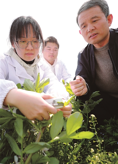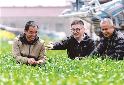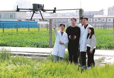 在該校農(nóng)學(xué)院院長(zhǎng)楊澤峰看來(lái),卓越“新農(nóng)人”不僅要理念新、懂技術(shù),還要會(huì)經(jīng)營(yíng)、善管理、能創(chuàng)新。在揚(yáng)州大學(xué)文匯路校區(qū)試驗(yàn)田上空,一架無(wú)人機(jī)在“專業(yè)飛手”的操控下,靈活自如地按照規(guī)劃路線低空飛行、往返穿梭?!盁o(wú)人機(jī)拍攝的苗情照片,將實(shí)時(shí)傳送至電腦端,立即生成農(nóng)情監(jiān)測(cè)數(shù)據(jù),為制定精準(zhǔn)的生產(chǎn)管理方案提供科學(xué)決策,實(shí)現(xiàn)了‘慧’巡田、‘慧’種地?!痹撛翰┦垦芯可鷹钐鞓?lè)一邊操作、一邊說(shuō)。