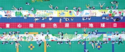 4月20日,浙江仙居縣迎暉幼兒園的孩子們繪制長卷。4月22日是第54個(gè)世界地球日,該園開展主題教育活動,通過組織孩子們開展繪長卷、環(huán)保時(shí)裝秀、垃圾分類等活動,讓孩子們將愛護(hù)地球的意識根植心中。王華斌 攝