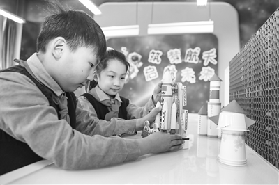 山東省青島市徐水路小學(xué)學(xué)生在科技教室里拼裝“火箭”模型。近年來(lái),青島市李滄區(qū)教體局全面加強(qiáng)青少年科技教育,構(gòu)建多元化科技校本課程體系,提升學(xué)生科學(xué)素養(yǎng)。