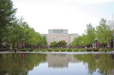 清華大學(xué)主樓是由清華大學(xué)師生自行設(shè)計(jì)的校園杰作之一,也是清華校園中規(guī)模最宏大的建筑群。主樓正前方的噴泉池在陽(yáng)光下倒映出主樓的輪廓,實(shí)體與倒影相互輝映,彰顯出“自強(qiáng)不息,厚德載物”的沉穩(wěn)厚重。韓旭 攝