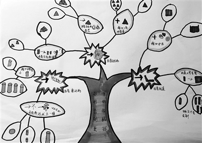 樹(shù)狀式思維導(dǎo)圖,整合零散經(jīng)驗(yàn)。在多次游戲后,幼兒已積累了相關(guān)經(jīng)驗(yàn),可采用樹(shù)狀式思維導(dǎo)圖,將零散的經(jīng)驗(yàn)進(jìn)行整合。例如,在“積木保齡球”游戲中,幼兒發(fā)現(xiàn)“積木保齡球”的滾動(dòng)與滾動(dòng)物、目標(biāo)物、軌道三個(gè)因素有關(guān),于是教師請(qǐng)幼兒把這三個(gè)因素畫(huà)在主干上,然后圍繞這三個(gè)主干因素,再把滾動(dòng)物的大小形狀、目標(biāo)物高矮排列、軌道寬窄等發(fā)現(xiàn)畫(huà)到小分支上,從而將幾次連續(xù)性探究和發(fā)現(xiàn)的經(jīng)驗(yàn),進(jìn)行了梳理和整合。