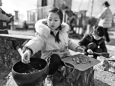 娓娓道來(lái),再現(xiàn)“亮點(diǎn)”畫(huà)面。幼兒講述自己的游戲經(jīng)歷時(shí),教師可以根據(jù)講述者表達(dá)的內(nèi)容呈現(xiàn)相關(guān)畫(huà)面。例如,小班幼兒在進(jìn)行戶(hù)外“娃娃家”游戲時(shí),把場(chǎng)地中低結(jié)構(gòu)材料想象成各種美味佳肴,把石頭當(dāng)水餃、把樹(shù)皮當(dāng)牛肉等。在幼兒講述時(shí),教師呈現(xiàn)了該游戲畫(huà)面,并還原了當(dāng)時(shí)幼兒的對(duì)話。“以物代物”是幼兒想象力發(fā)展的表現(xiàn),教師通過(guò)播放相關(guān)視頻,既把其他幼兒帶入游戲中,又有利于拓展幼兒的思維空間。