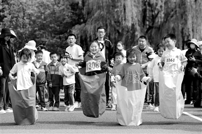 5月6日,在山東省青島市城陽區(qū)第二實驗小學(xué),孩子們參與“袋鼠跳跳跳”項目比賽。當(dāng)日,該校開展了“‘躍’運(yùn)動‘悅’成長”春季親子趣味運(yùn)動會,孩子們和家長通過參加袋鼠跳跳跳、瘋狂毛毛蟲、雙人夾球跑、三人持桿合作往返跑等趣味運(yùn)動,既體驗運(yùn)動的快樂又增進(jìn)親子交流。