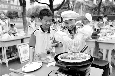 5月18日,湖北省襄陽市第四十七中學的學生在廚藝大賽上制作美食。該校結合學校勞動教育清單,開展“舌尖上的童年”之“中華美食小當家”廚藝大賽,讓學生在勞動中成長。
