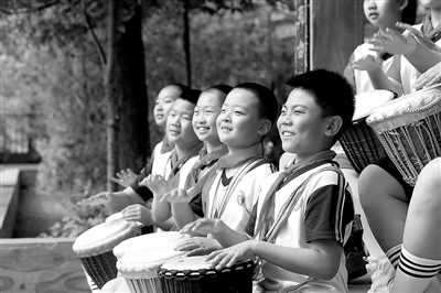近日,黑龍江省齊齊哈爾市龍沙小學(xué)學(xué)生正在課后服務(wù)時(shí)間打非洲鼓唱童謠。立足開展好課后服務(wù),龍沙小學(xué)發(fā)揮學(xué)校教育主陣地作用,促進(jìn)學(xué)生全面發(fā)展。常文華 攝