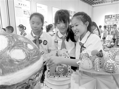 近日,廣西南寧市天桃實(shí)驗(yàn)學(xué)校教育集團(tuán)天桃校區(qū)舉辦少兒美術(shù)作品展,共展出全校一至六年級(jí)學(xué)生的課堂習(xí)作3000余件。本次展覽打破了課堂教學(xué)邊界,讓學(xué)生感受美、發(fā)現(xiàn)美,提高學(xué)生們的藝術(shù)素養(yǎng)和創(chuàng)造能力。圖為學(xué)生在參觀展覽。