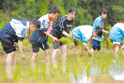 近日,貴州省黔西市協(xié)和鎮(zhèn)石人小學(xué)師生體驗(yàn)插秧。近年來(lái),黔西市關(guān)工委緊扣“鄉(xiāng)村振興”主題,鼓勵(lì)轄區(qū)內(nèi)各中小學(xué)、幼兒園開展形式多樣的“田野課堂”教學(xué)實(shí)踐活動(dòng)。周訓(xùn)超 攝