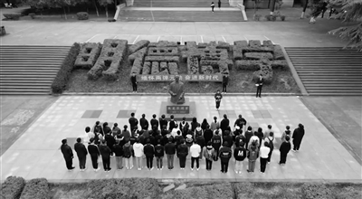 每逢周末,南華大學(xué)校園內(nèi)“兩彈一星”功勛人物張愛萍、王淦昌的銅像旁便圍滿了人。這是該?!皟蓮椧恍恰本裱芯繒膸熒鷤冊趯W(xué)習(xí)探討“兩彈一星”精神。